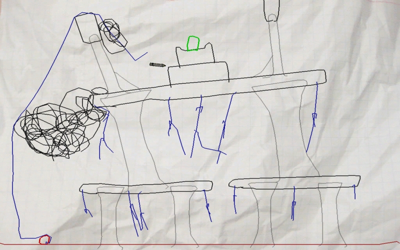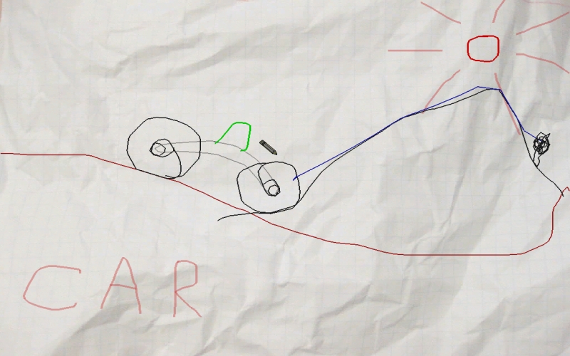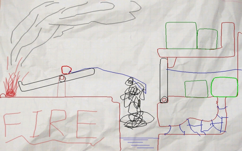 Ein Level ist geschafft, sobald das grüne und das rote Objekt Kontakt haben. Gelangt eines der Beiden außerhalb des Bildschirms, beginnt das Level von vorne. Wie du das Ziel erreichst, ist dir völlig freigestellt. Dabei stehen dir verschiedene Fähigkeiten zur Verfügung. Zum einen kannst du beliebige Objekte aus drei verschiedenen Materialien an jegliche Stelle des Levels zeichnen. An Materialien stehen Metall, Seil und weiches Metall zur Verfügung, die jeweils unterschiedliche Eigenschaften besitzen. Dein zuletzt gezeichnetes Objekt kannst du jederzeit wieder entfernen. Außerdem besitzt du die Fähigkeit, die Zeit anzuhalten. Am wichtigsten ist es jedoch, die physikalischen Gesetze, allen voran die Gravitation, geschickt auszunutzen.